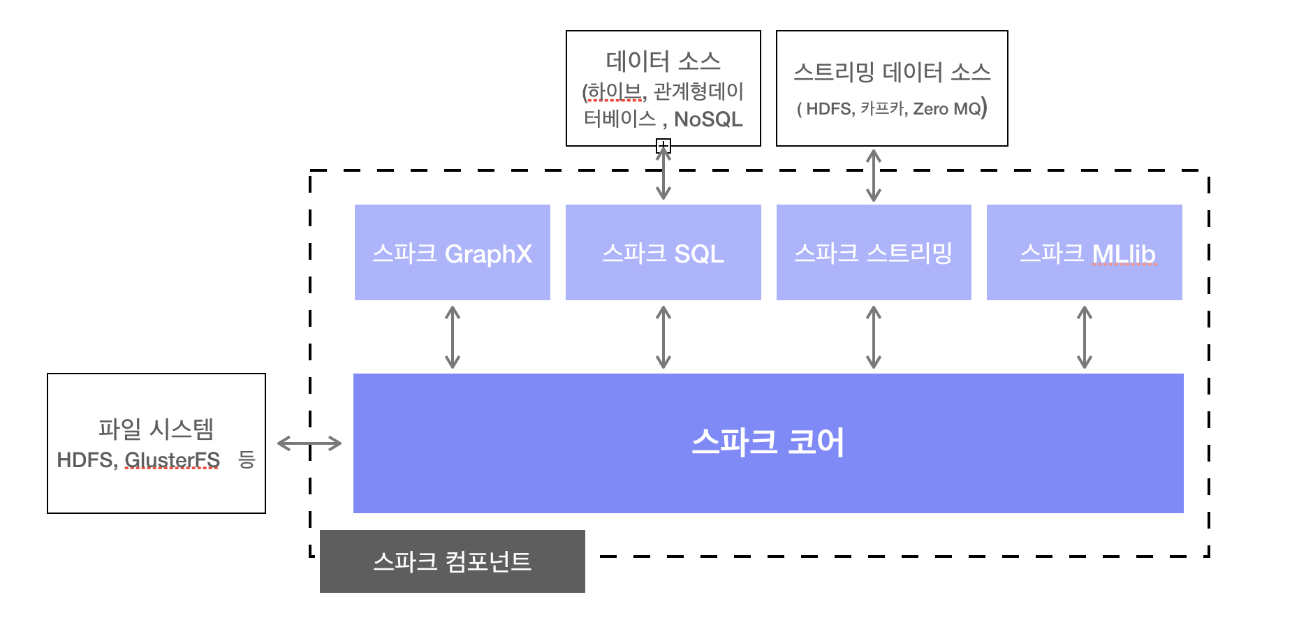 스파크 코어(Core), 스파크 SQL, 스파크 스트리밍(Streaming), 스파크 GraphX, 스파크 MLlib